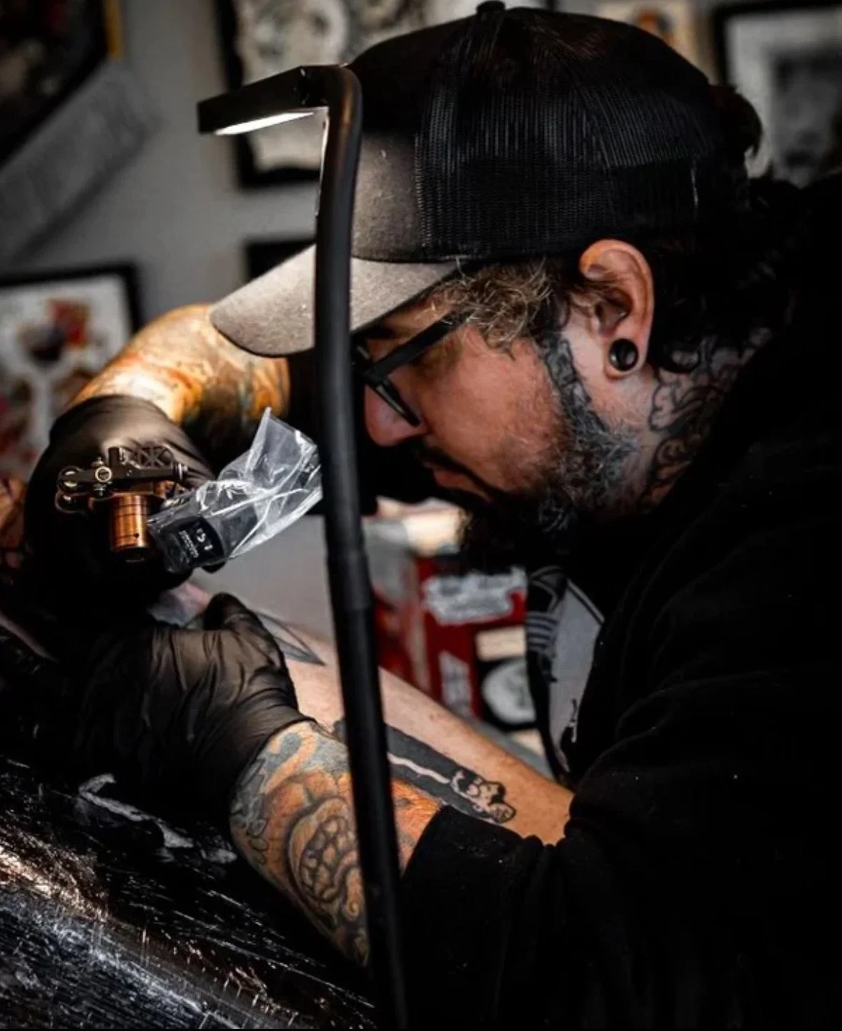 Keith is a seasoned tattoo artist with a decade of experience bringing bold, timeless artwork to clients across the country. Specializing in traditional, neotraditional, dot work, sacred geometry, and black & grey. He is known for his clean, confident line work and his ability to blend classic tattoo aesthetics with modern flair. Whether crafting a striking custom piece or refining a meaningful design, Keith approaches every tattoo with professionalism, precision, and a genuine passion for the craft.